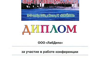 Наша компания приняла участие в конференции "Вода в промышленности", которая прошла 28-29 октября 2013 года в Москве