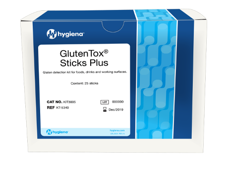 GlutenTox ® Sticks Plus – набор, при помощи которого, Вы сможете быстрого определить наличие глютена в продуктах питания и напитках, а также на рабочих поверхностях и смывах. Определение основано на принципе иммунохроматографического анализа.