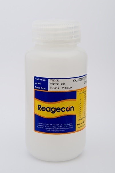 Reagecon предлагает более 45 различных значений стандартов электропроводности и общего содержания растворенных твердых веществ (TDS), начиная от 1,3 мкСм / см до 500 000 мкСм / см.