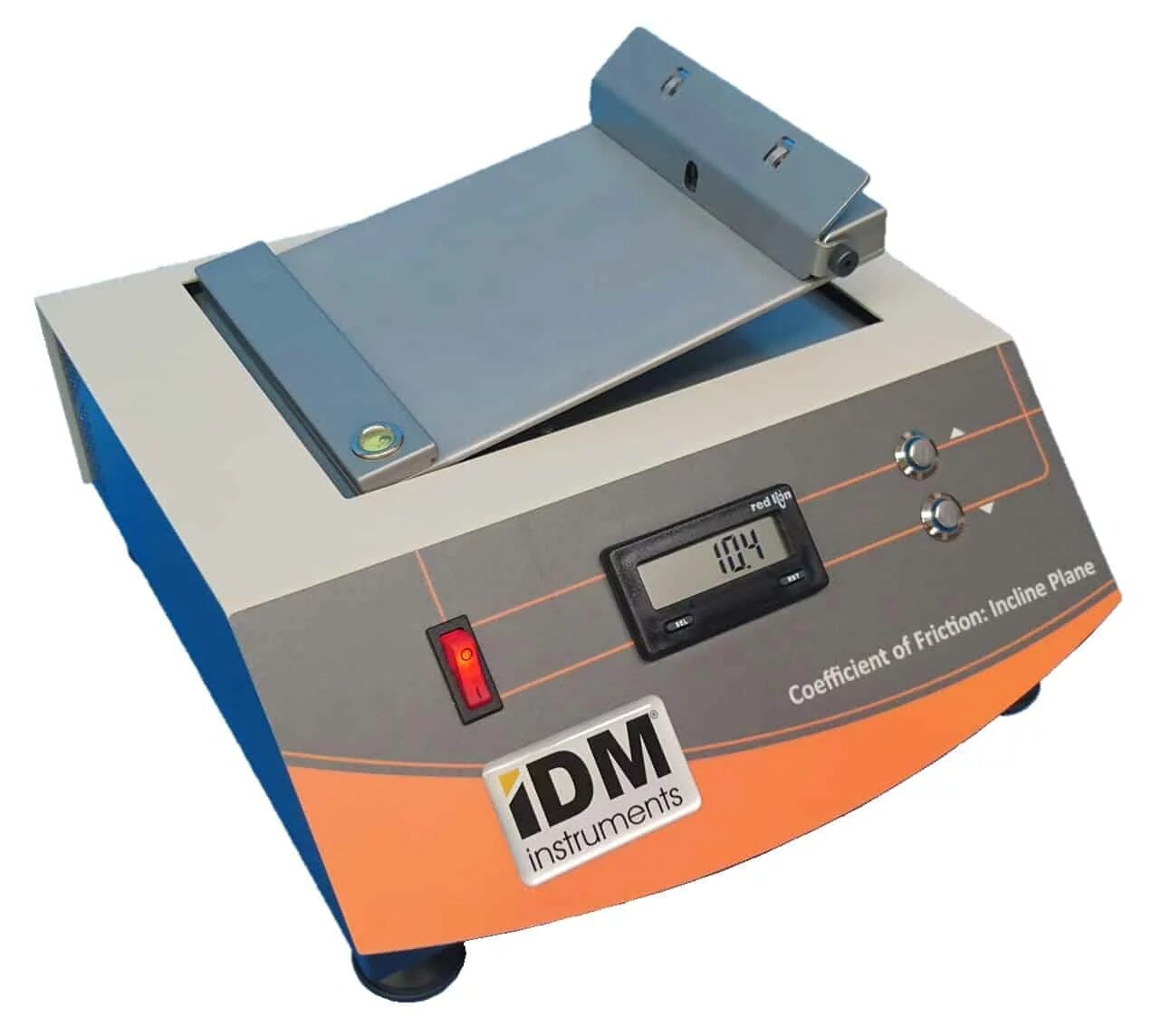 Устройство для проверки коэффициента трения (C.O.F) работает по принципу наклонной плоскости. Устройство используется для определения коэффициента статического трения. Данный параметр важен для большинства упаковочных материалов, включая пластиковые пленки, бумагу и т.д. Определяется путем измерения угла, под которым одна испытательная поверхность начинает скользить относительно другой. А также позволяет проверить как изменяется трение при увеличении наклона. Столик повышается с постоянной и заранее установленной скоростью. Наклонная плоскость измерителя коэффициента трения соответствует многим международным стандартам испытаний.