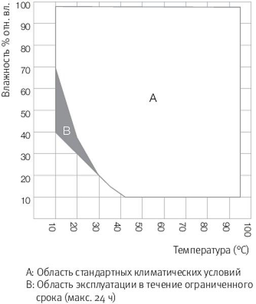 - Диапазон влажности: от 10 до 98 % отн. вл.