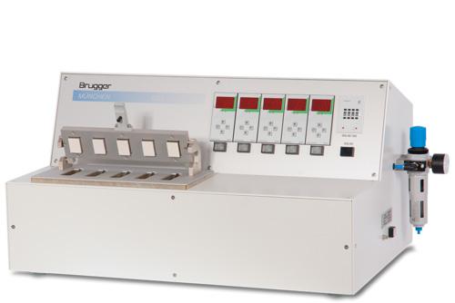 С помощью стандартного набора весов (5*214 грамм) машина прилагает давление 0,35Н/кв.см, таким образом моделируются реальные условия упаковки продуктов, чувствительных к давлению. Специальная конструкция гарантирует строгую параллельность и равное распределение давления по всей площади сварки всех образцов. 5 независимых самонастраеваемых ПИД-регуляторов позволяют с высокой точностью регулировать температуру сварки, поэтому сварочная машина NDS демонстрирует высокую воспроизводимость результатов.