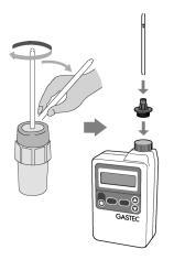 4. После окончания отбора пробы достаньте трубку из держателя и считайте показания.