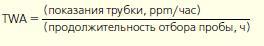 6. Вычислите среднее значение концентрации (TWA) определяемого вещества по формуле: