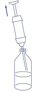 3. Откройте бутыль, поместите систему внутрь (следите, чтобы трубка не касалась воды) и отберите 50 мл воздуха (1/2 хода насоса) и подождите немного для начала реакции в трубке.