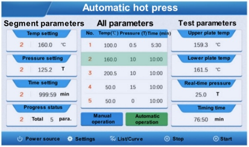 | Температура нагрева плит пресса | От комнатной температуры - 300,0 ℃/500,0 ℃ (опционально) |